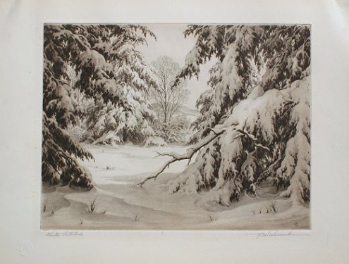 WOICESKE, Ronau, (American, 1887-1953): ''Winter Interlude'', Etching, 13'' x 17'' with full margins, pencil signed and titled, Chicago Society of Etchers blindstamp, unframed.