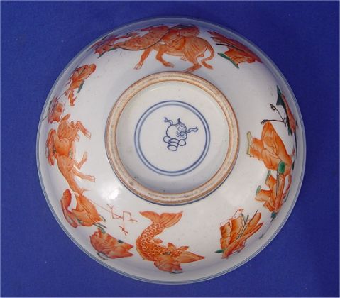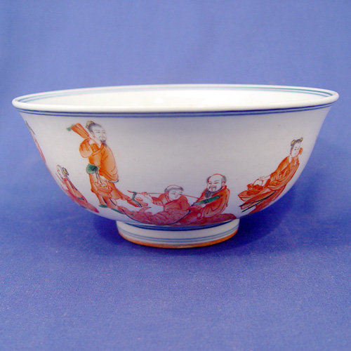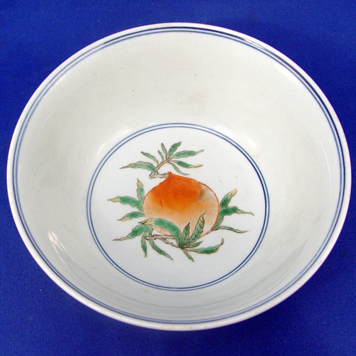 CHINESE PRE REVOLUTION IMARI BOWL: Exterior hand decorated with figures, interior with a peach, 7 1/2'' dia, 3 1/2'' h.