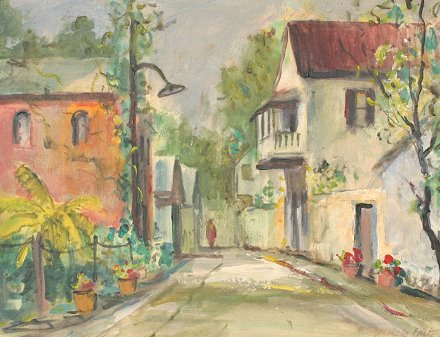 FRITZ, Emmett, (American, 1917-1995): St. Augustine Scene, Oil & W/C/B, image size 10'' x 12 3/4'', signed, gold frame, 15'' x 18''. Est. $800/1200**