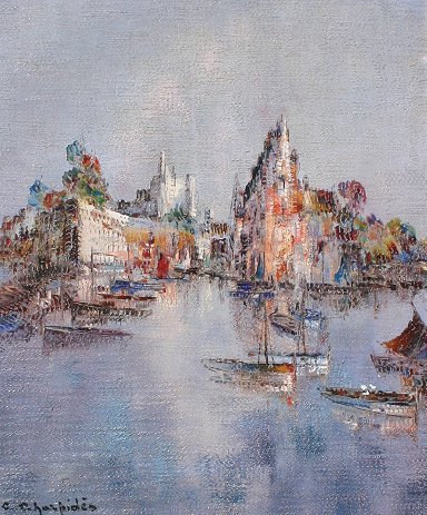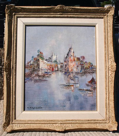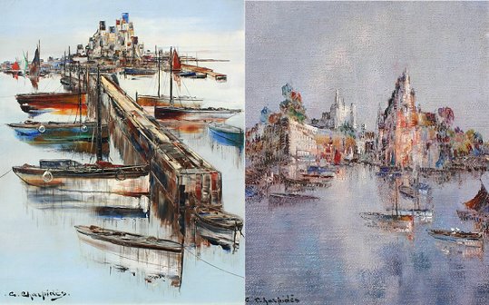 CHARPIDES, Christophe, (Greek, 1902-1992): 2 Piece lot includes (1) Ships In Harbor and (2)La Corse, O/C, 22'' x 18'', both signed and titled verso, framed, largest being 30'' x 26''.