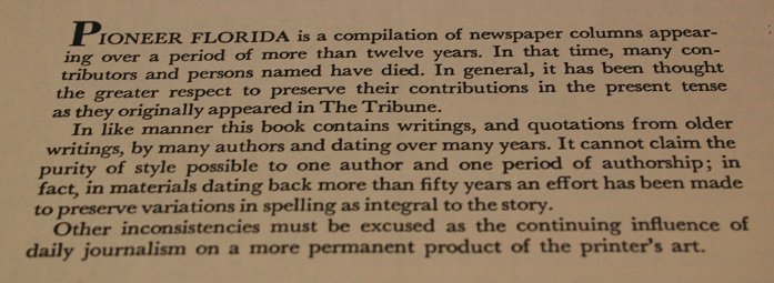 PIONEER FLORIDA: By D.B. McKay, Editor. Three illustrated volumes. The Southern Publishing Company, Tampa Fl. A compilation of newspaper columns appearing in the Tribune. Some very interesting stories of the real people in Florida.