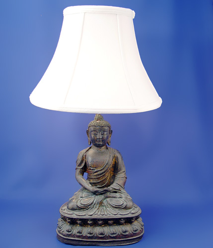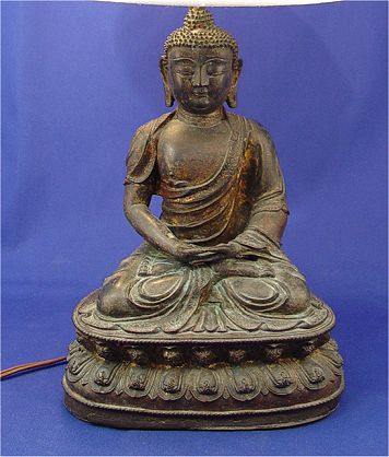 BUDDHA METAL FIGURAL LAMP: Early 20th C figure mounted as a lamp, Buddha is 11''h., the lamp is 20'' h. overall