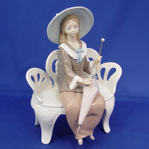 LARGE LLADRO FIGURE ''WAITING IN THE PARK'' 1374: 10 3/4''h. Sculpted by Francisco Catala'. Retired in 1993.