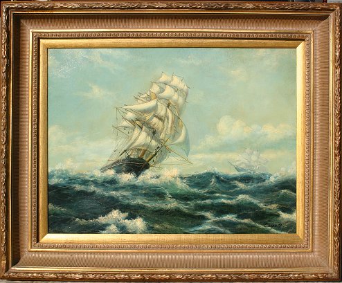 CONTEMPORARY CLIPPER SHIP PAINTING: O/C, 18'' x 24'', signed, gold frame, 32'' x 44''. Est. $200/400**