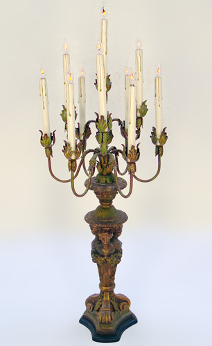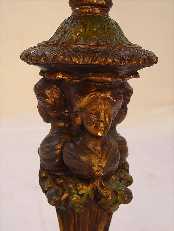 PALATIAL CARYATID CANDELABRA LAMP: 10 lights supported by a trio of caryatids, 52''h., 14'' dia.