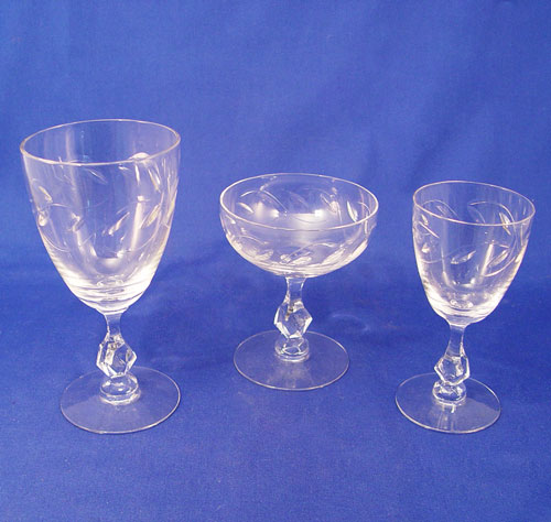 TIFFIN ''DAPHNE'' CRYSTAL STEMWARE: 1960'S elegant glassware. 12 water goblets (6 1/2''), 12 champagne / sherberts, and 12 wine stems.
