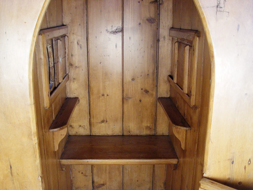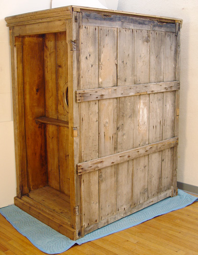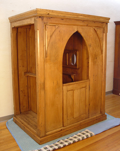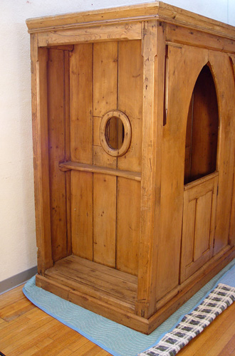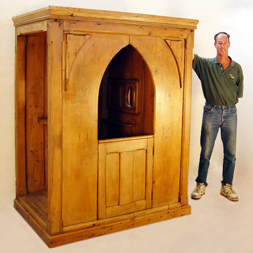 CONFESSIONAL FROM MID 19TH C MONAHAN COUNTY IRISH CHURCH: Constructed of pine. Great as a phone room, child's play or homework space, or of course a confessional. 77''h x 60 1/2''w x 39''d
