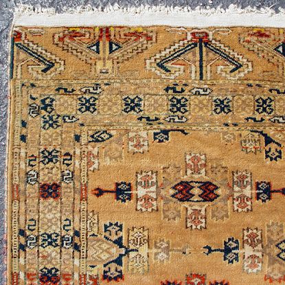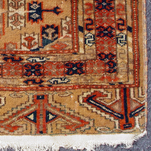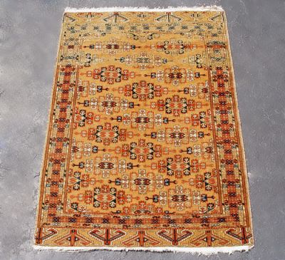 HAND TIED BOKHARA PRAYER RUG: Approx. 4'10'' x 3'3'', in amber and gold tones. Est. $500/800**