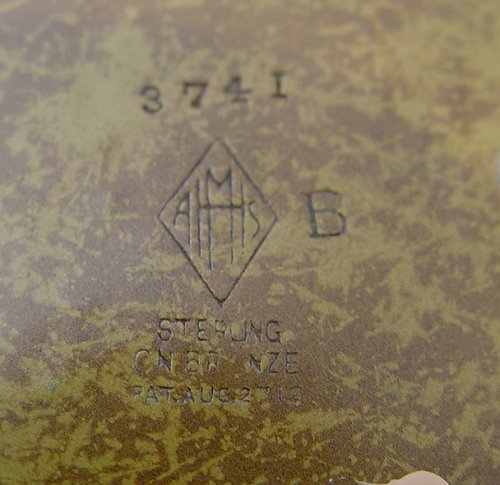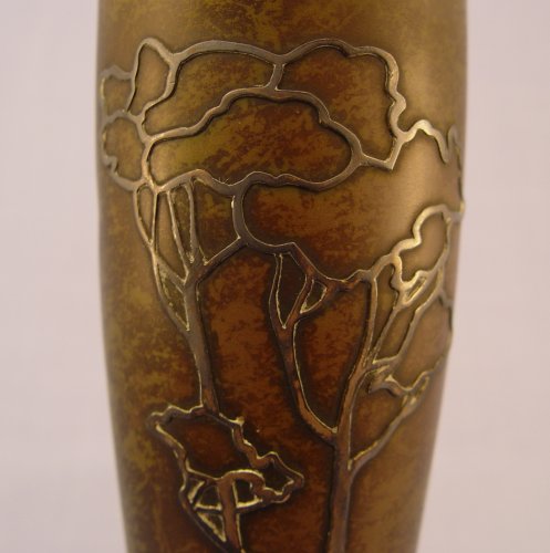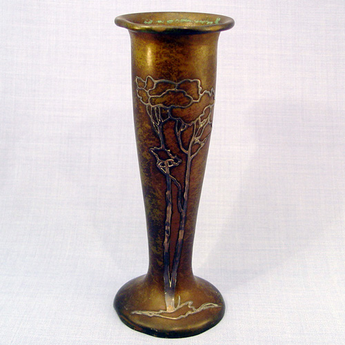 HEINTZ ART METAL STERLING ON BRONZE VASE: American Art Metal Studios symbol on the base along with the number 3741. Please note dent on base and dent and uneven rim. 11 1/2''h.