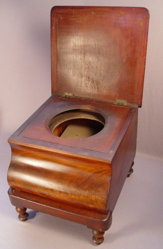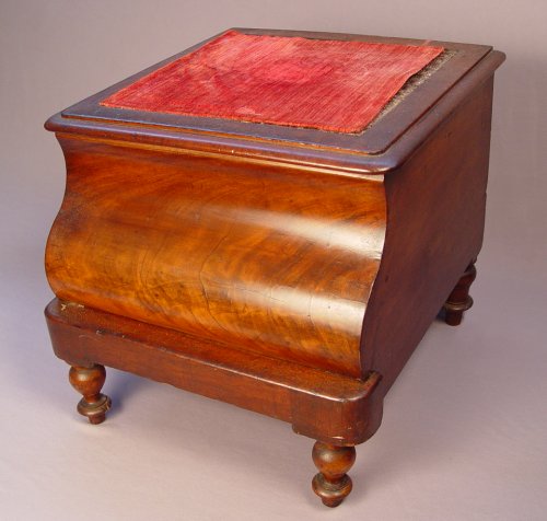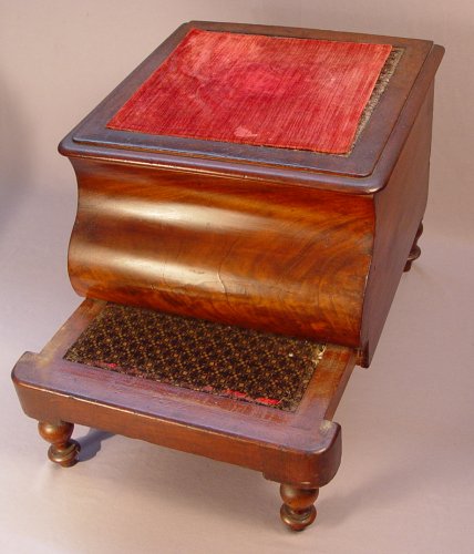 EARLY 19TH C OGEE MAHOGANY EMPIRE BED STEP COMMODE: Lift top and pull out drawer., 16 1/2''h. x 17 1/4'' x 10''.