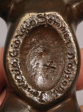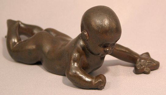 ITALIAN BRONZE BABY: Incised mark to the base ''Fonderia Giorgio Sommer, Napoli'', 2 1/4'' h. x 6'', shows age, some wear to patina.
