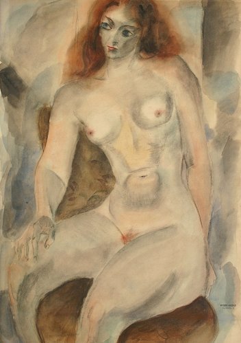 HARTMAN, C. Bertram, (American, 1882-1960): Seated Female Redheaded Nude, W/C and pencil, signed, estate stamp, carved and gilded frame with wear, 33'' x 27''.