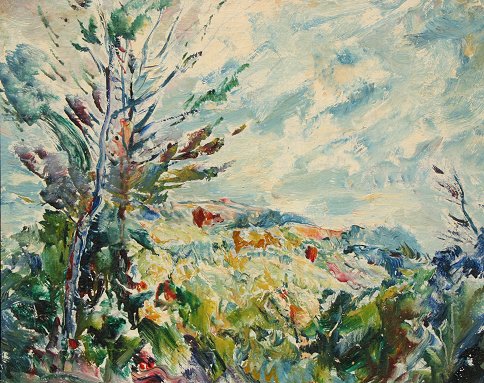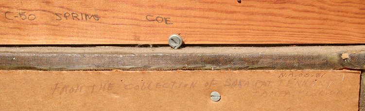 COE, Theodore Demerest, (American, 1866-): Impressionist Landscape, ''Spring'', O/C, 16'' x 20'', signed, from the collection of Sara Tennant, Trend House Gallery label verso, framed, 21'' x 25''. Widely regarded as being ahead of his time, Coe studied with Twachtman at the Art Students League, as well as abroad in Europe. After moving to Florida, Coe reportedly chose to concentrate on restoration, as his advanced style of artwork was not yet widely appreciated, therefore did not sell well. Relined by Nightwine, with minimal inpaint in upper corner/margin, sporadic cracklure and minor paint fleck. Est. $1500/2500**