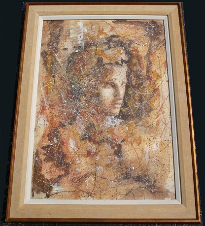 ROSENDALE, Harriet, (American, 20th C.): Abstract Portrait Profile, W/C, 29'' x 21, signed, gold frame with fabric mat, 36'' x 43''. Rosendale, originally from Buffalo, NY, studied at the Art Students League, with Dumond, and Corbino. Est. $300/500**