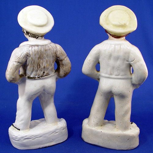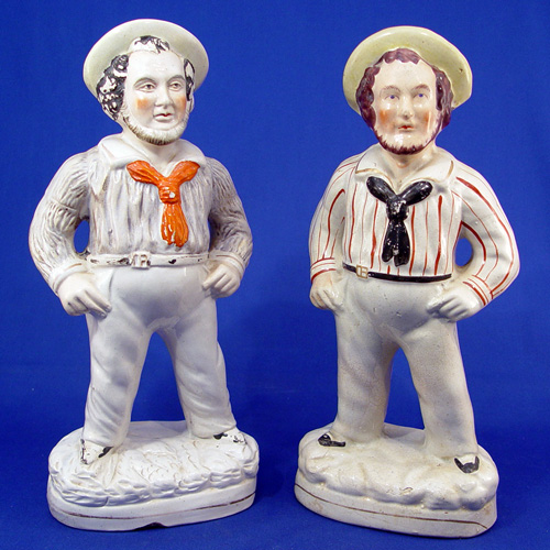 TWO 19TH C STAFFORDSHIRE SAILOR FIGURES: 12 1/2''h., one in a bit better condition than the other, both show wear.