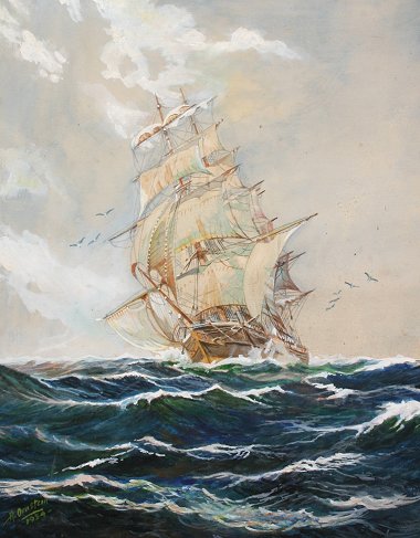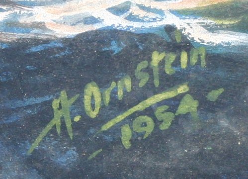 ORNSTEIN, Jacob, (American, 1907-): Clipper Ship, W/C and Gouache, 20'' x 16'', signed and dated 1954, white painted frame, 24'' x 20''.