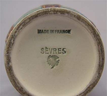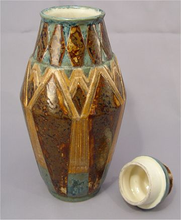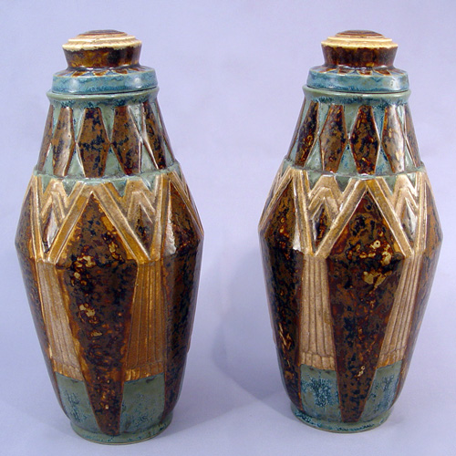 PAIR OF SEVRES FRENCH ART POTTERY COVERED VASES: Sgraffito decoration earthenware. 10''h.