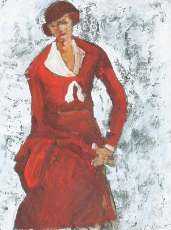 DORTSCH, Claire V., (American, 20th C.): Woman in Red, O/B, 15'' x 11 1/2'', signed, gold frame, 23'' x 28''. Claire V. Dorst, Painter-Educator, was born in Plymouth, Wisconsin 1922. His schooling in art began at Beloit College, where he received his BA in 1949. He received his MA degree at University of Iowa, 1953, and his MFA at University of Wisconsin-Madison, 1963. Dorst began teaching art in 1953 in various State colleges in Iowa, then was professor at Florida Atlantic University from 1964 to 1968. He was also chairman of the art department at FAU 1968. (Courtesy of Artlinc and AskArt)