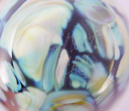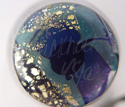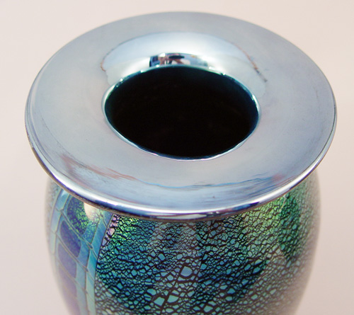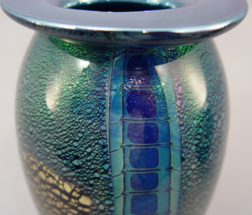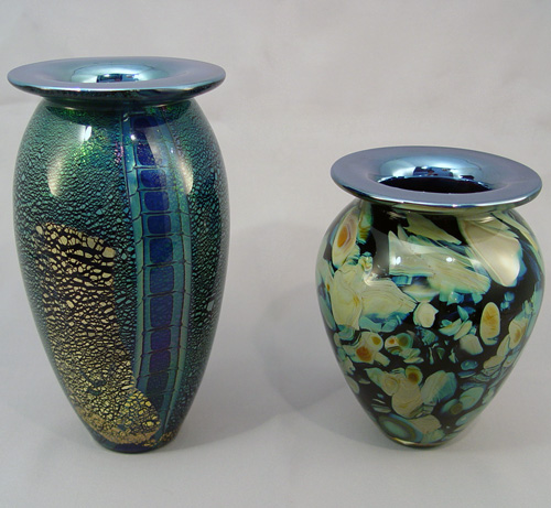 TWO EICKHOLT STUDIO ART GLASS VASES: 1) ''Galaxy'' vase with gold leaf, 7 1/2''h., signed and inscribed VSGA 2) An ''Agate'' type vase, 5 3/4'' h. signed and marked VCAG. Both vases have an iridescent blue interior.