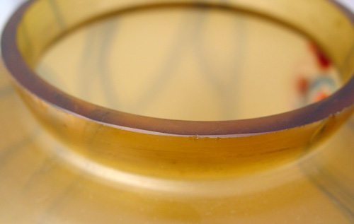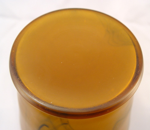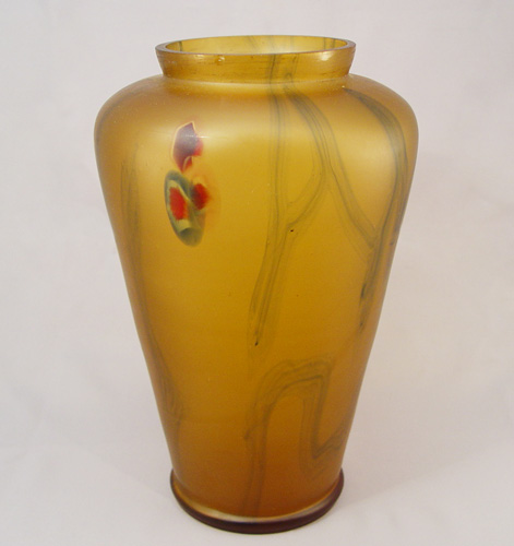 IRIDESCENT ART GLASS VASE: Amber blown glass vase with spots of color, approx. 12''h. and 8'' at widest dia.