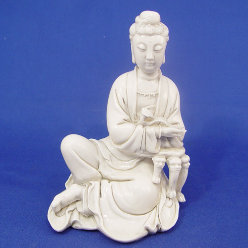 CHINESE BLANC DE CHINE QUAN YIN: Impressed character marks, 6 1/2''h.