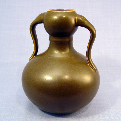 CHINESE TEA DUST VASE: Matt green glaze, 8''h, 6 1/2'' at the widest.