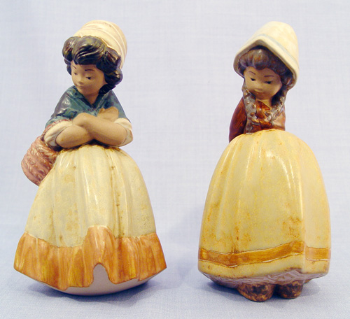 2 LLADRO GRES EARTHTONE FIGURES: 1) ''Lonely'', #2026, 8'' tall. 2) ''Girl Waiting'', #2093, 8''.