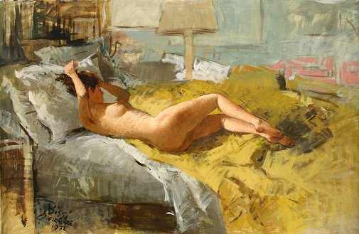 BISSI, Sergio, (Italian, 1901-1987): Nude, O/C, 30'' x 48'', unstretched, signed, signed verso, Firenze, 1972.