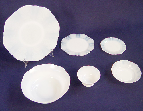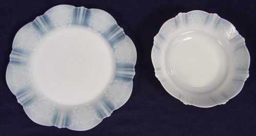 AMERICAN SWEETHEART MONAX DEPRESSION ERA GLASSWARE: 45 pieces to include 4 dinner plates, 11 3/4'' dia., 6 plates, 6''dia., 10 plates, 8'' dia, 18 plates, 6'' dia., 5 cereal or soup bowls, 5 3/4' dia., a footed 4 1/2'' bowl, and a serving bowl, 8 1/2'' dia.