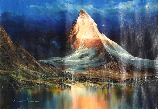 MUNNICH, Heinz, (German, 1921): Alpine Landscape, O/C, 24'' x 36'', unframed, signed. Cracklure, several touches of paint fleck, but good overall.
