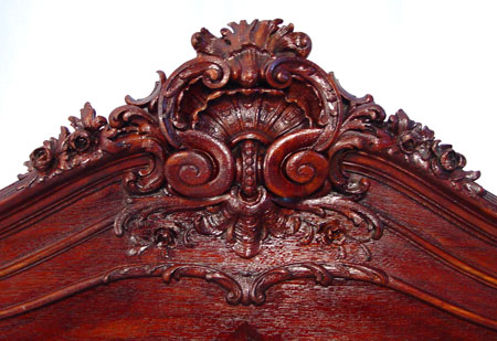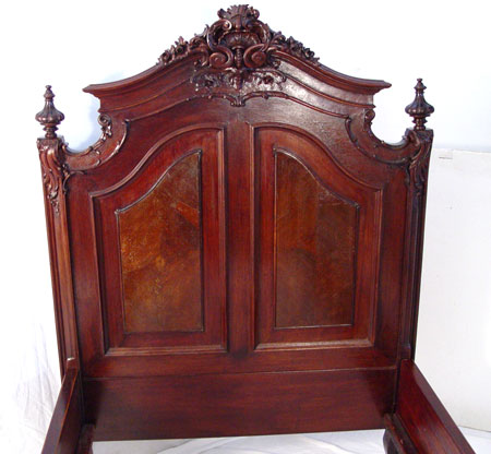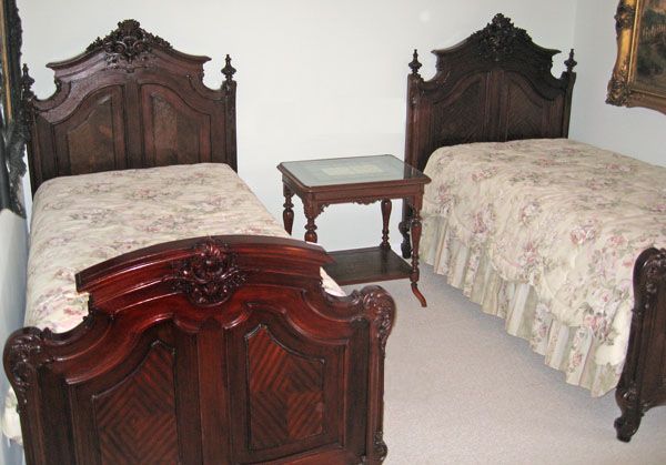 PAIR VICTORIAN ORNATELY CARVED TWIN BEDS: In refinished condition. The headboards are 59'' high x 43 1/2'' wide. Footboards are 39 1/2'' high.