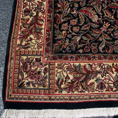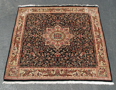 HAND TIED TIGHTLY WOVEN SQUARE CARPET: Approx. 6'1'', square, dark ground.