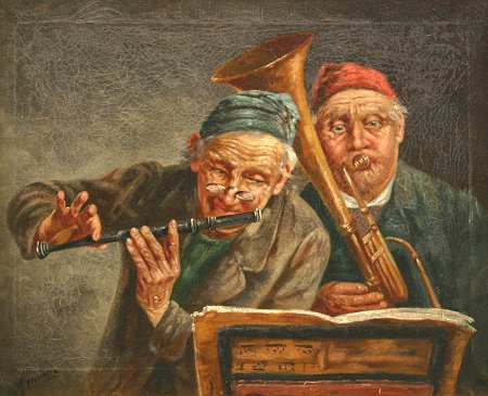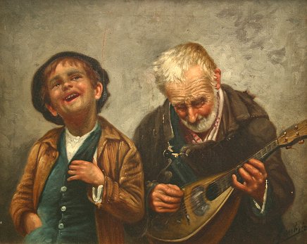 MARANTONIO, Fillipo, (Italian 19th/20th Century): ''The Musicians'', and ''The Serenade'', Oils/Canvas, 9 1/2'' x 11 3/4'', signed, matching gold frames, 13 3/4'' x 16''. Heavy craquelier.
