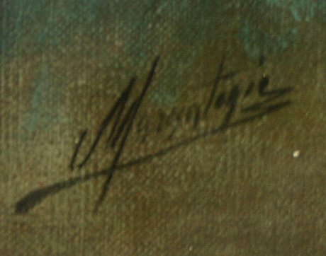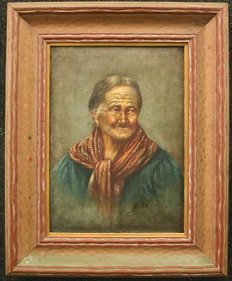 MARANTONIO, Fillipo, (Italian, 19th/20th Century): Portrait of a Smiling Elderly Woman, Oil/Canvas, 14'' x 10'', period painted and carved frame with minor wear, 21'' x 17'', signed. Patch verso, needs cleaning.