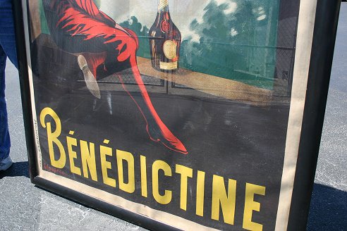 CAPPIELLO, Leonetto, (Italian, 1875-1942): Large Framed Benedictine Poster, 1907, P.V.C. stamp in left margin, 77 1/2'' x 50'', overall with frame, 82'' x 55''. Several worn creases and faint browning in margins, laid on linen, not examined out of the frame, numerous repairs to tears in margins with little paper loss.
