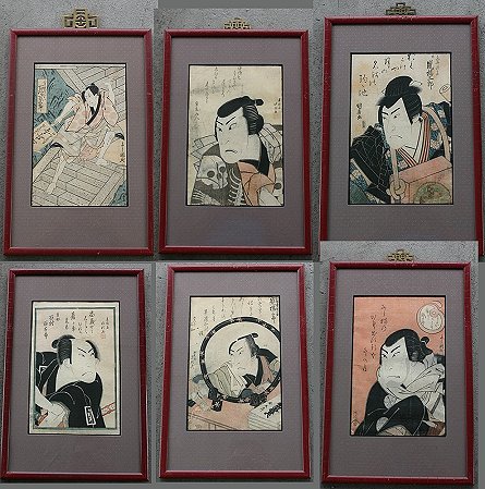 LOT OF SIX 19TH C JAPANESE WOODBLOCK PRINTS: Matching oriental frames, various artists, sight size 14 1/4'' x 9 1/2'', framed, 25'' x 15''. Generally in fair to good condition, have not been examined out of the frame, some creasing and fading. Sold as is. Est. $500/800**