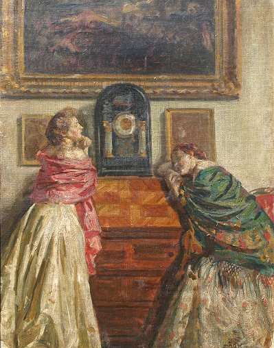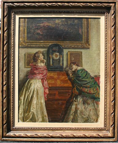 MARK, Lajos/Lewis, (Hungarian, 1867-1940): ''Watching the Clock'', Oil/Canvas, 28'' x 22'', signed, contemporary carved frame, 36'' x 31''. Several patches with in-paint, needs cleaning. Est. $2000/4000**