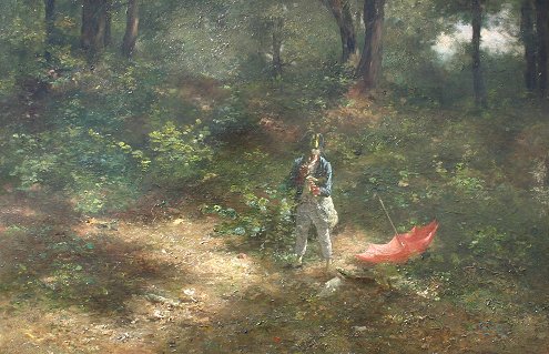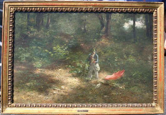 NEOGRADY, Antal, (Hungarian, 1861-1942): The Orchid Picker, Oil/C, 16'' x 24'', signed, gilded molding, 18'' x 26''. Several minor flecks of touch up in-paint. Est. $1000/2000**