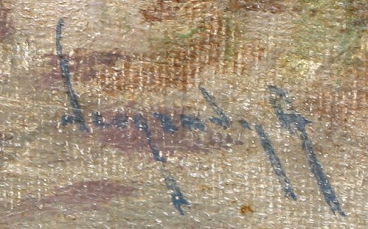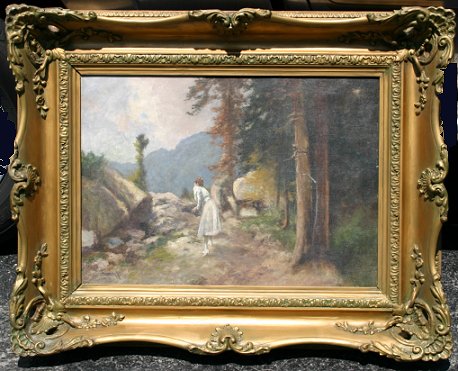 NEOGRADY, Antal, (Hungarian, 1861-1942): Hide and Go Seek, Oil/Canvas, 20'' x 27 3/4'', signed, encased in pierce carved and gilded gesso frame with wear and repair, 31'' x 39''. Needs cleaning. Est. $1500/2500**