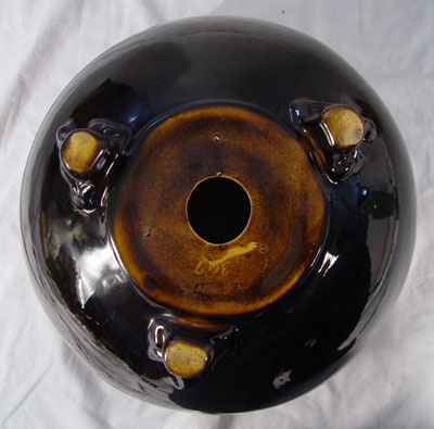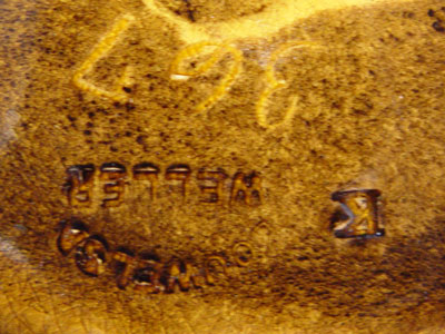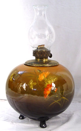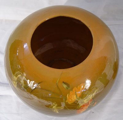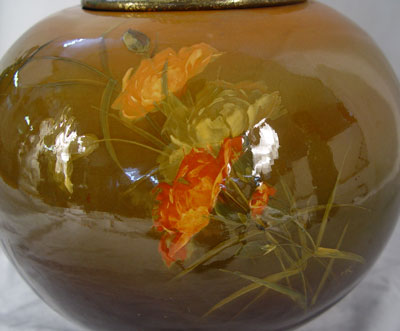 WELLER LOUWELSA ART POTTERY LAMP: Artist signed, ER (Eugene Roberts). 12'' dia, overall. Complete with brass lamp insert.