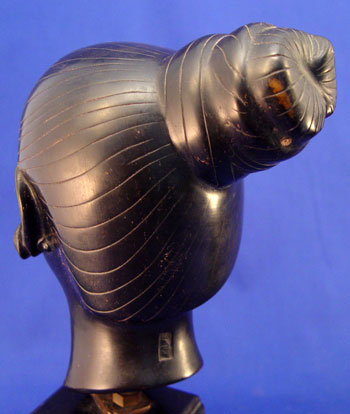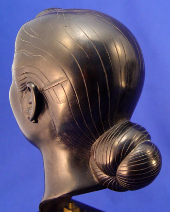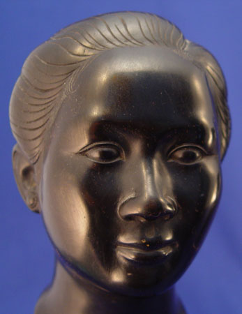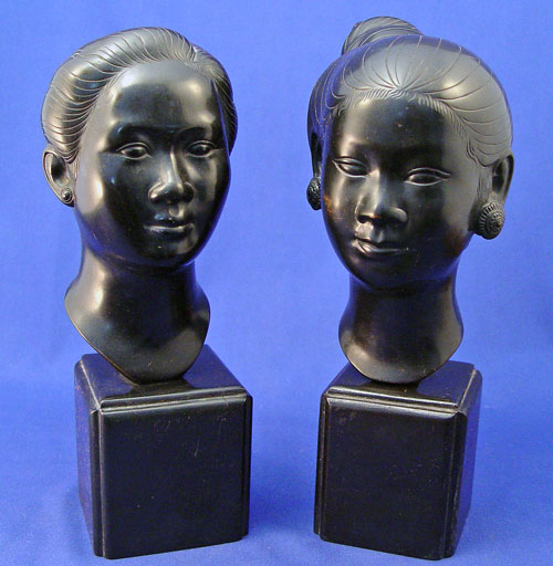 TWO ARTIST SIGNED ORIENTAL BRONZE BUSTS: Each an individual beauty, 10 1/2'' and 11 1/2''.