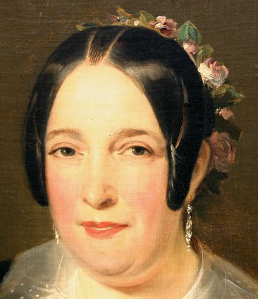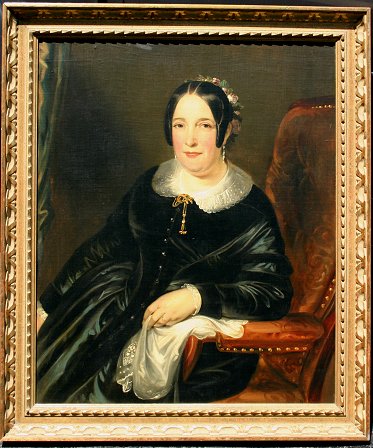 SCHOLARLY 19TH C OIL/CANVAS/BOARD PORTRAIT OF A SEATED WOMAN: 34'' x 28'', no visible signature, gilded frame, 39 1/2'' x 33 1/2''. Several areas of scattered in-paint, needs cleaning.