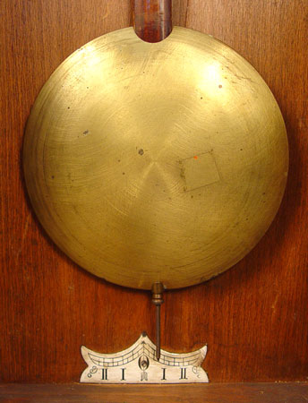FRENCH ONYX SHELF CLOCK: Ca. early 1900's. 8 day time & strike on coil gong. Replacement pendulum and key. Good running order. 14'' high X 9 1/2'' X 6 3/4''. Est. $600/800**