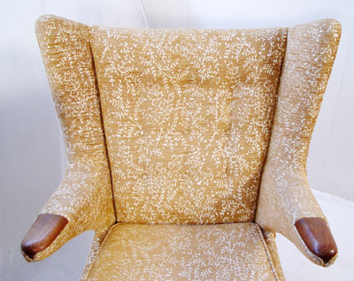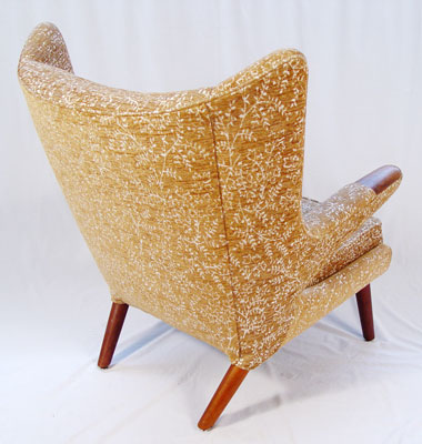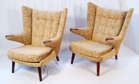 PAIR HANS WEGNER DESIGNED ''PaPa BEAR'' CHAIRS: Vintage mid century easy chair with tufted back, teak paws. 39'' x 35 1/2'' x 35''.