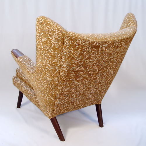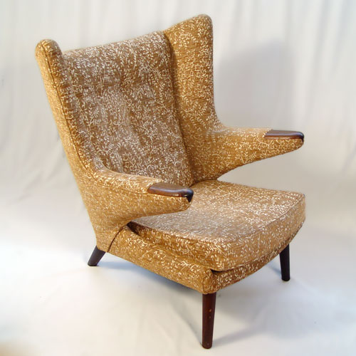 HANS WEGNER DESIGNED ''PaPa BEAR'' CHAIR: If you missed the pair in lot 1223. Vintage mid century easy chair with tufted back, teak paws. 39'' x 35 1/2'' x 35''.