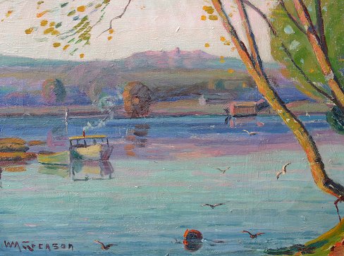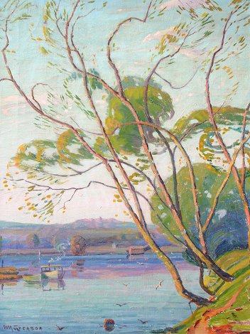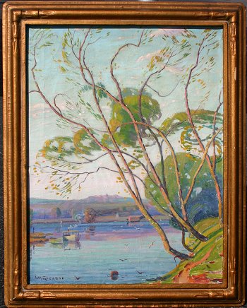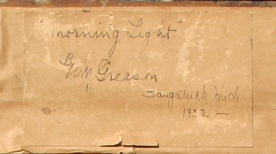 GREASON, William, (American, 1884-): ''Morning Light, Saugatuck Michigan, 1932'', Oil/C, 24'' x 18'', signed, titled and dated verso, period carved and gilded impressionist frame with wear, 28 1/2'' x 22 1/2''. Est. $800/1200**