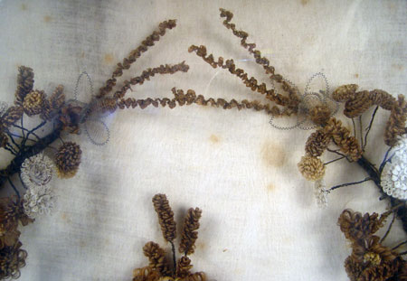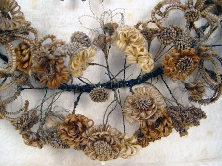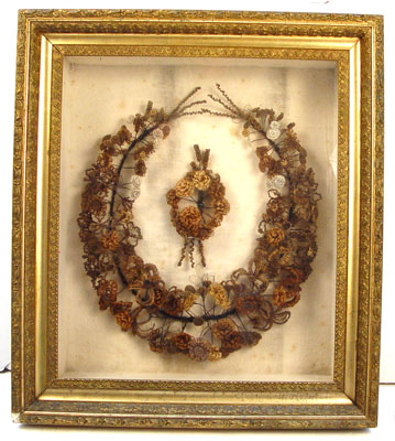 VICTORIAN HAIR WREATH IN SHADOW BOX FRAME: Frame measures 26 1/2'' high x 23 1/2'' wide x 7 1/4'' deep