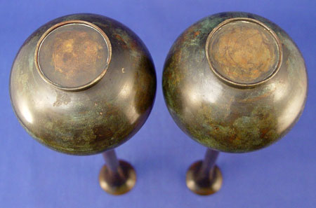 PAIR ASIAN BRONZE VASES: Believed to be Japanese, nice patina, 11 3/4'' tall, unsigned.