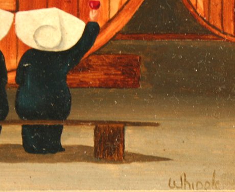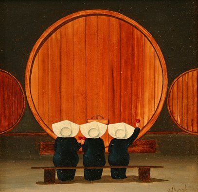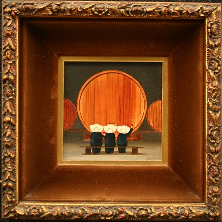 WHIPPLE, Frank, (American, 20th C.): 3 Nuns Sitting, Staring at a Barrel of Wine, Oil/Masonite, 5'' x 5'', signed, embossed gilt frame, 10'' x 10''. Est. $400/600**