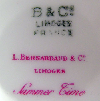 BERNARDAUD & CO FRENCH LIMOGES ''SUMMERTIME'' CHINA SERVICE: 100 pieces to include 12 dinner plates, 12 salad plates, 9 soup bowls, 12 bread plates, 13 bouillon cups with saucers, 13 cups and saucers, a round open vegetable bowl, a pierce handle serving plate, and a long tray.